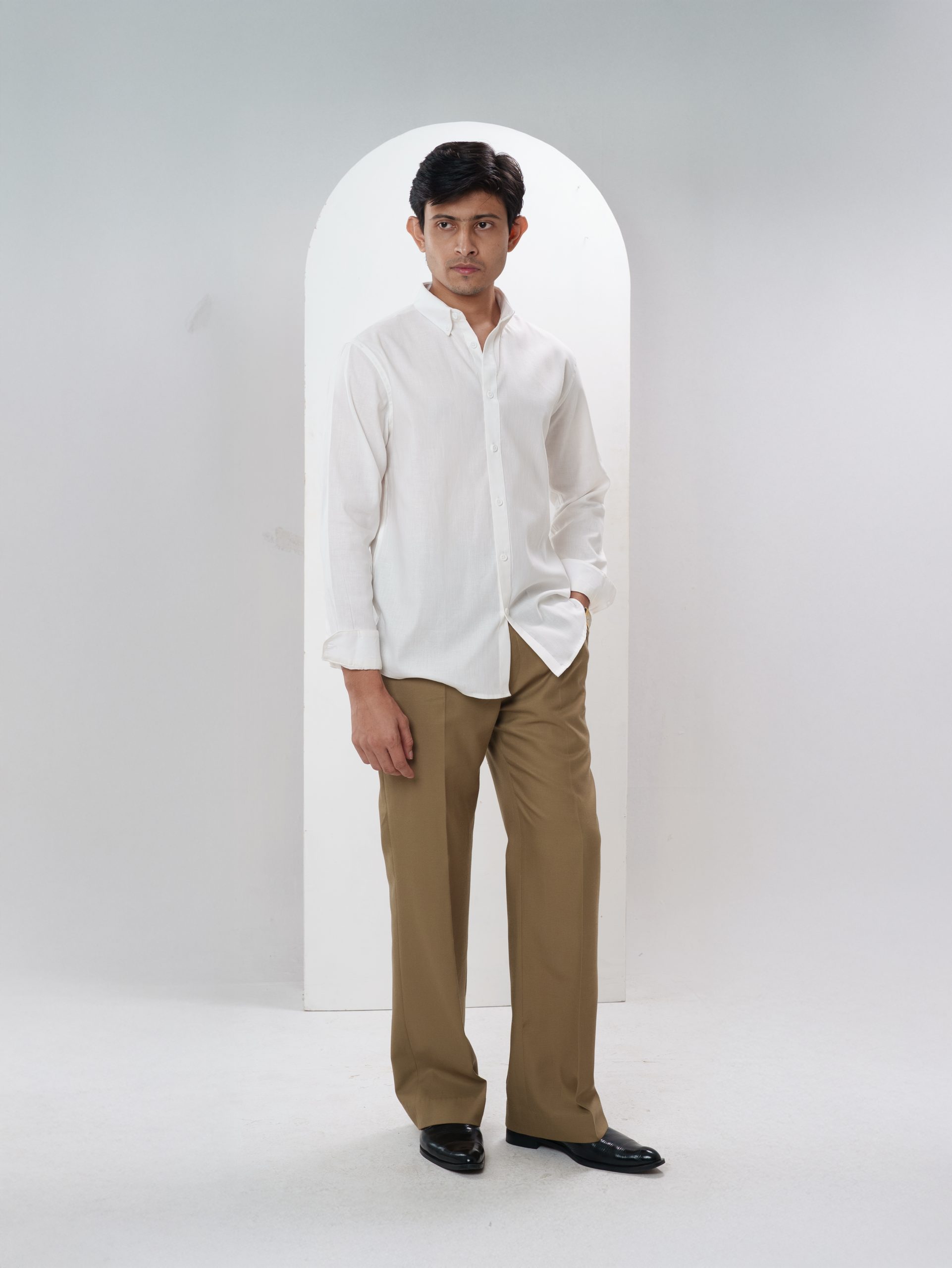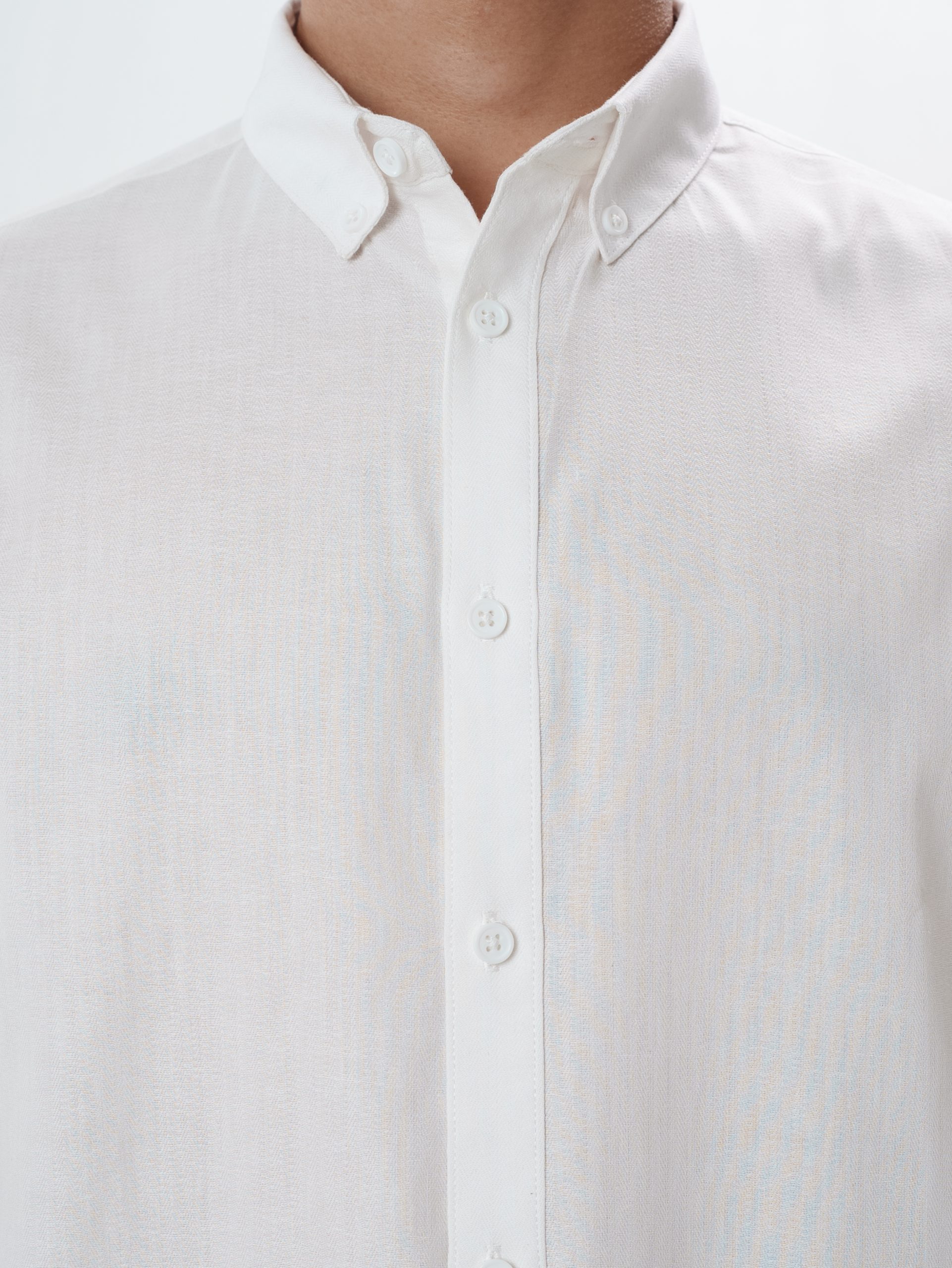 The ELEMENT Milk White Herringbone Shirt features a subtle woven herringbone texture that adds refined depth to its soft milk-white tone. Crafted from 100% cotton, the 150–160 GSM mid-light weave ensures breathable comfort with a smooth drape — ideal for elevated basics and formal layering.