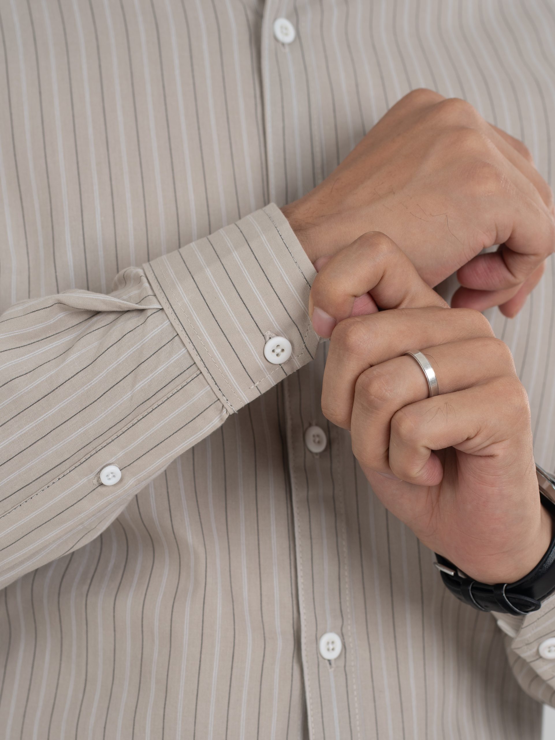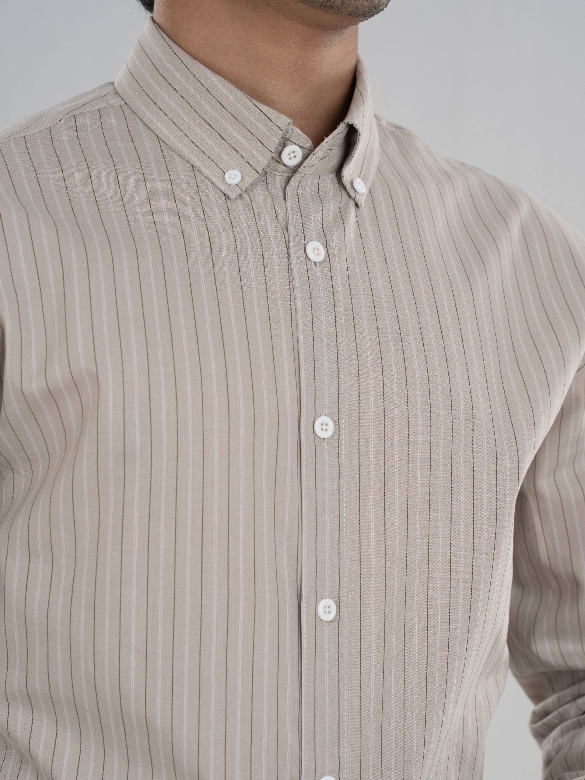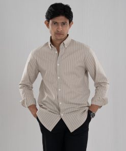 From the ETERNA Collection — a beige striped cotton shirt designed for breathable comfort and timeless sophistication.