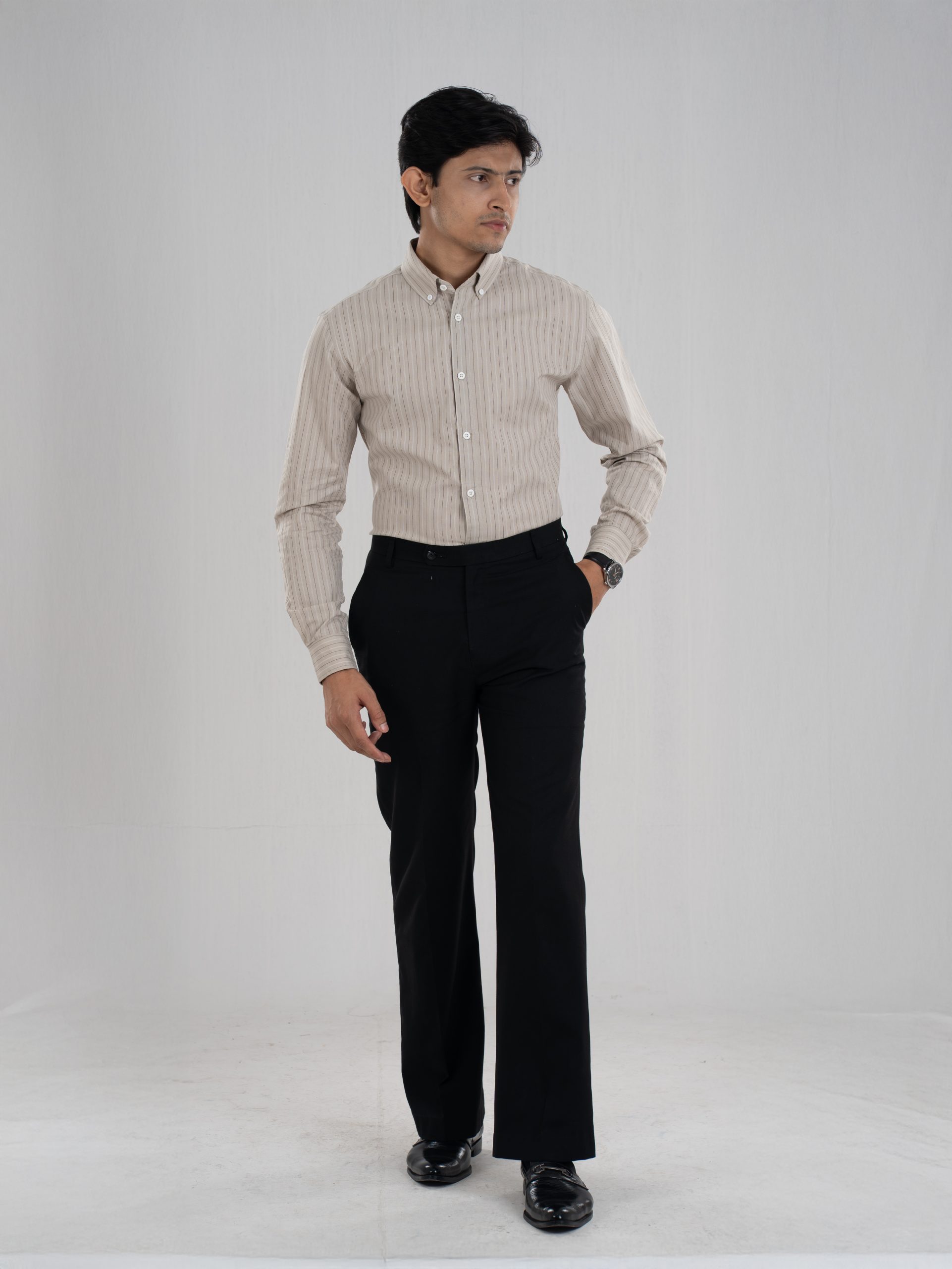 The ETERNA Beige Stripes Shirt is a refined wardrobe essential, blending understated charm with versatile style. Its earthy beige base and crisp dual-tone stripes create a balanced, modern look — ideal for workdays, smart-casual settings, or weekend outings. Lightweight and breathable, it ensures all-day comfort without compromising on elegance.