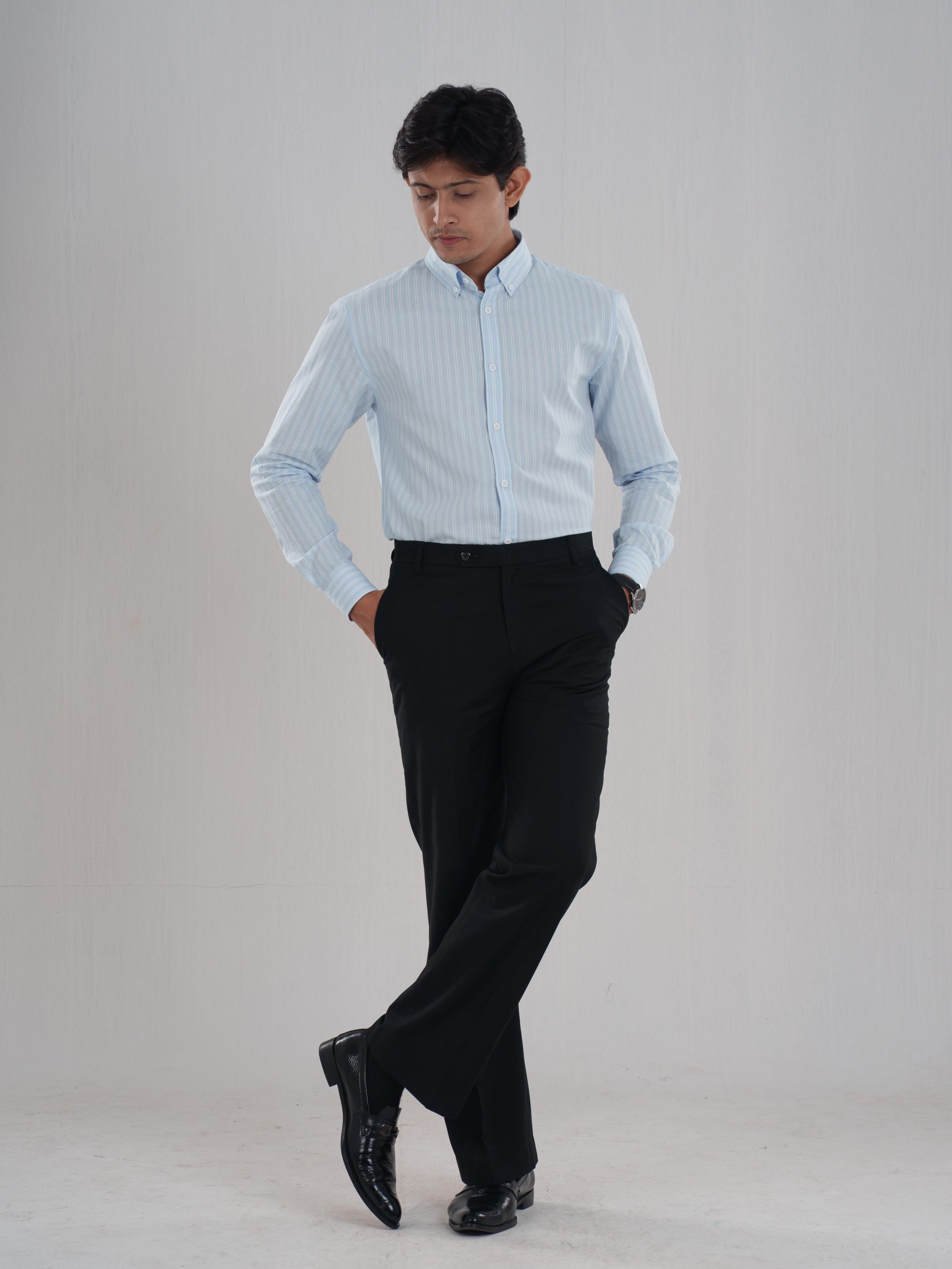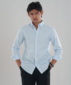 The ETERNA Sky Blue Stripes Shirt delivers timeless elegance with its soft blue base and crisp white vertical stripes. Crafted for breathable comfort and effortless sophistication, this shirt transitions seamlessly from office wear to evening outings. Lightweight and refined, it’s designed to keep you fresh and stylish all day.