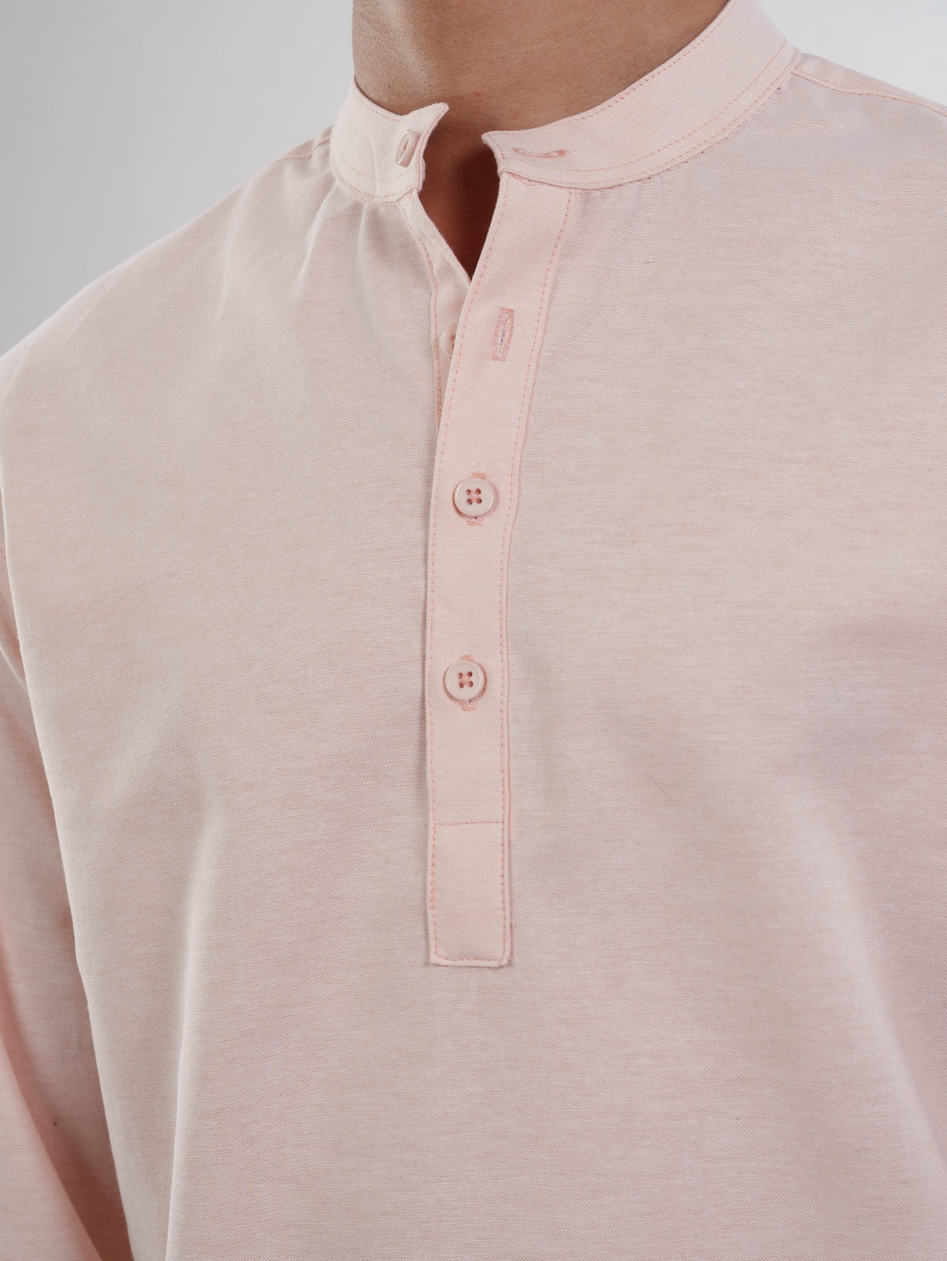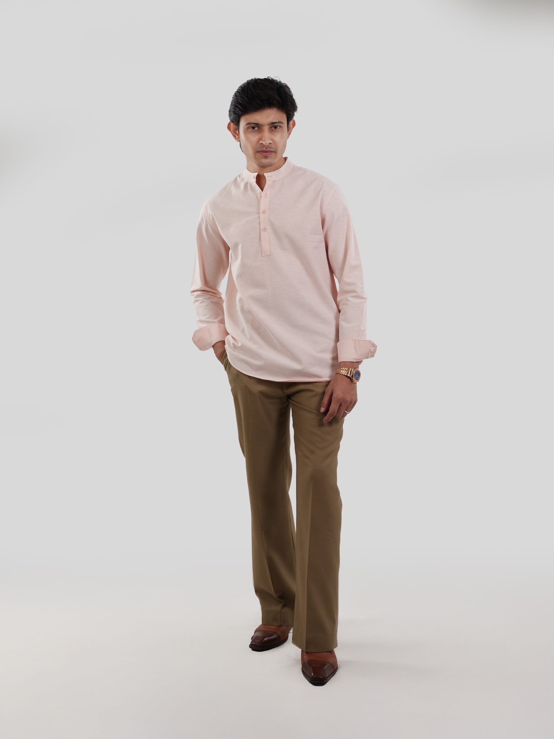 The FORD Soft Peach Katua offers a fresh and elegant look with its soft peach tone and smooth solid finish. Made from premium 100% Oxford cotton, it ensures breathable comfort with a structured yet easy drape.