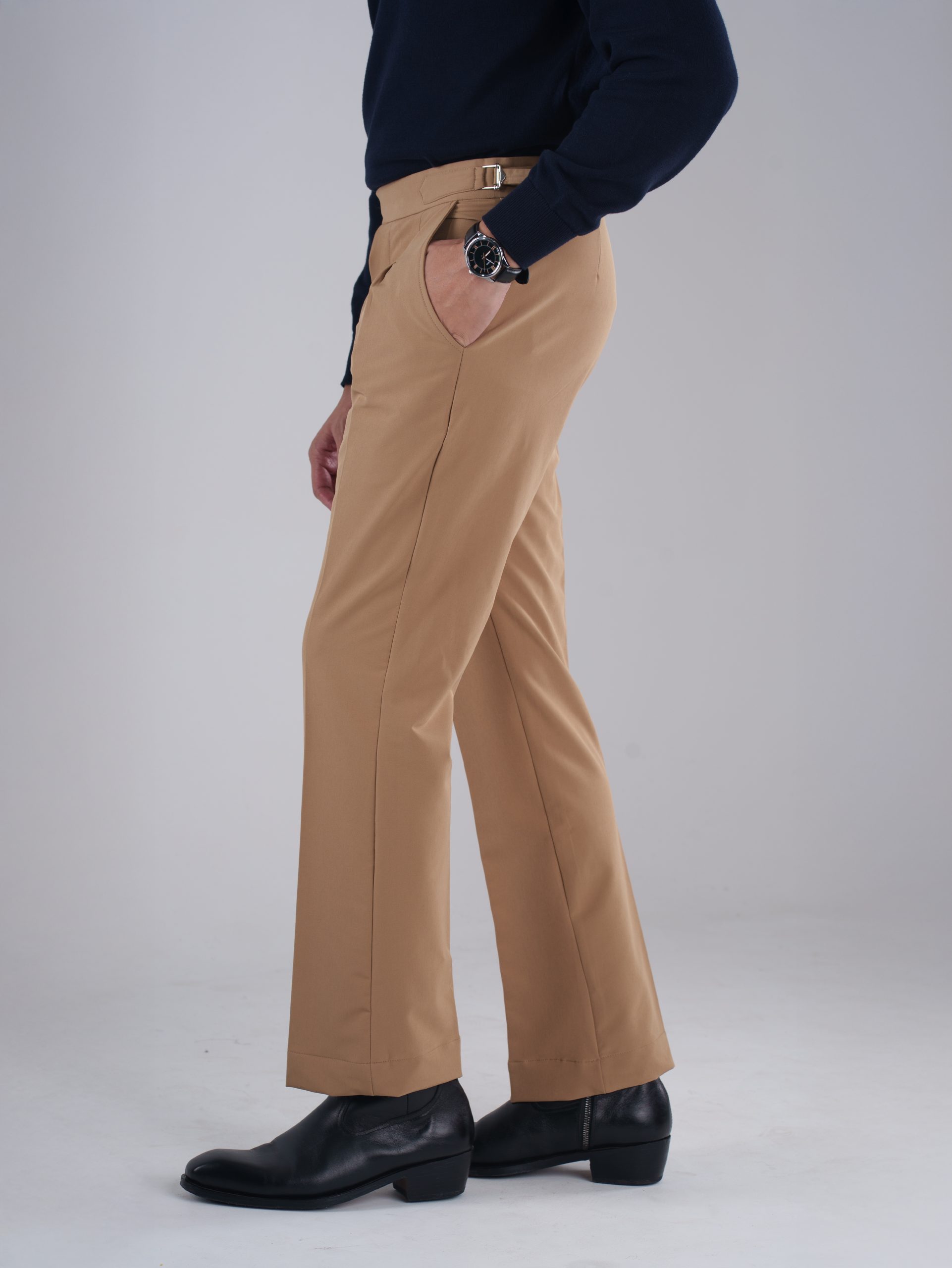A premium Gurkha bootcut pant crafted from stretchable dobby fabric, combining classic tailoring with modern comfort for versatile everyday wear.