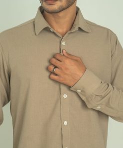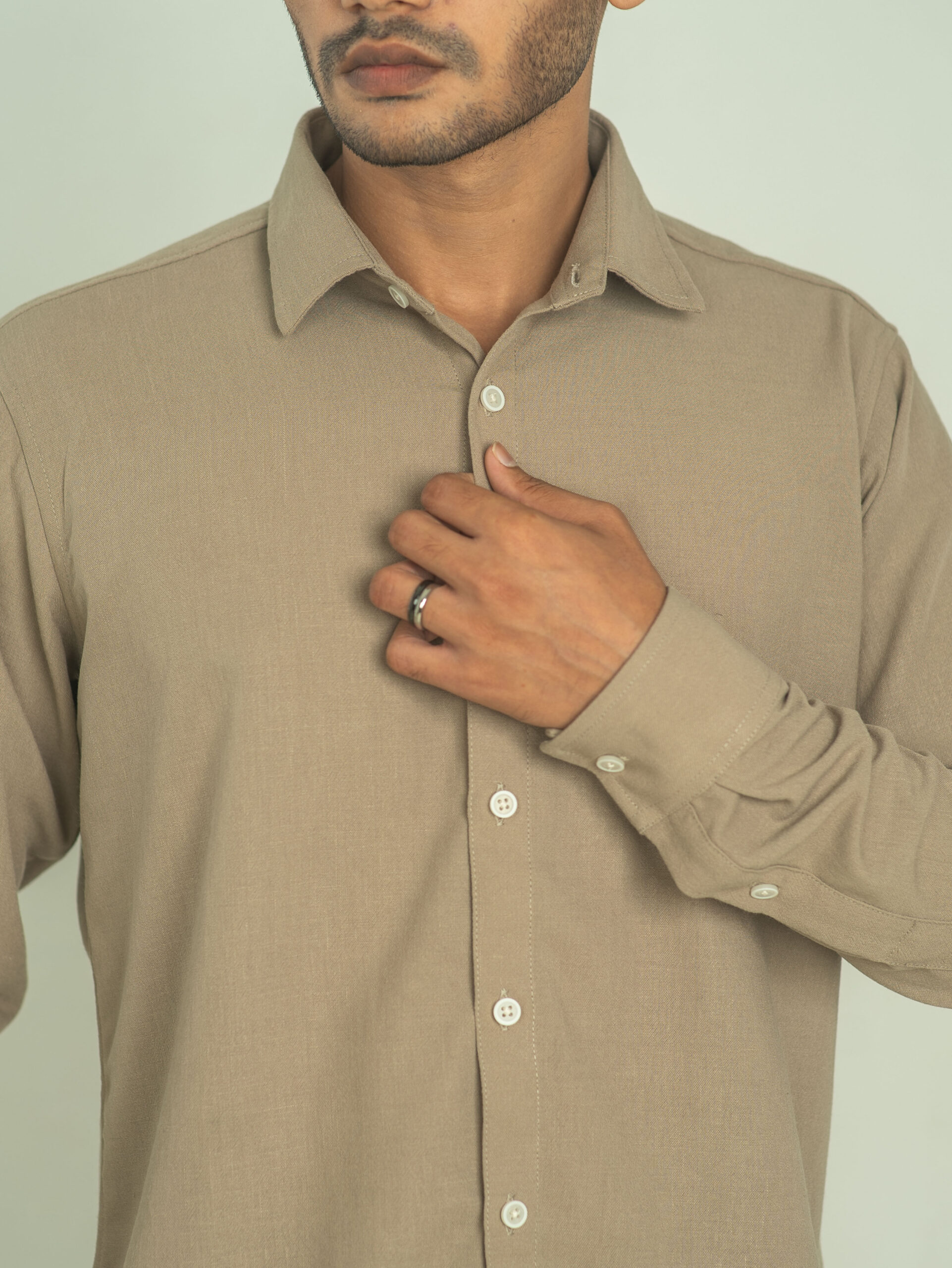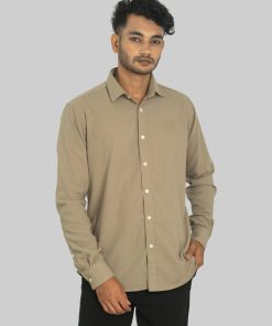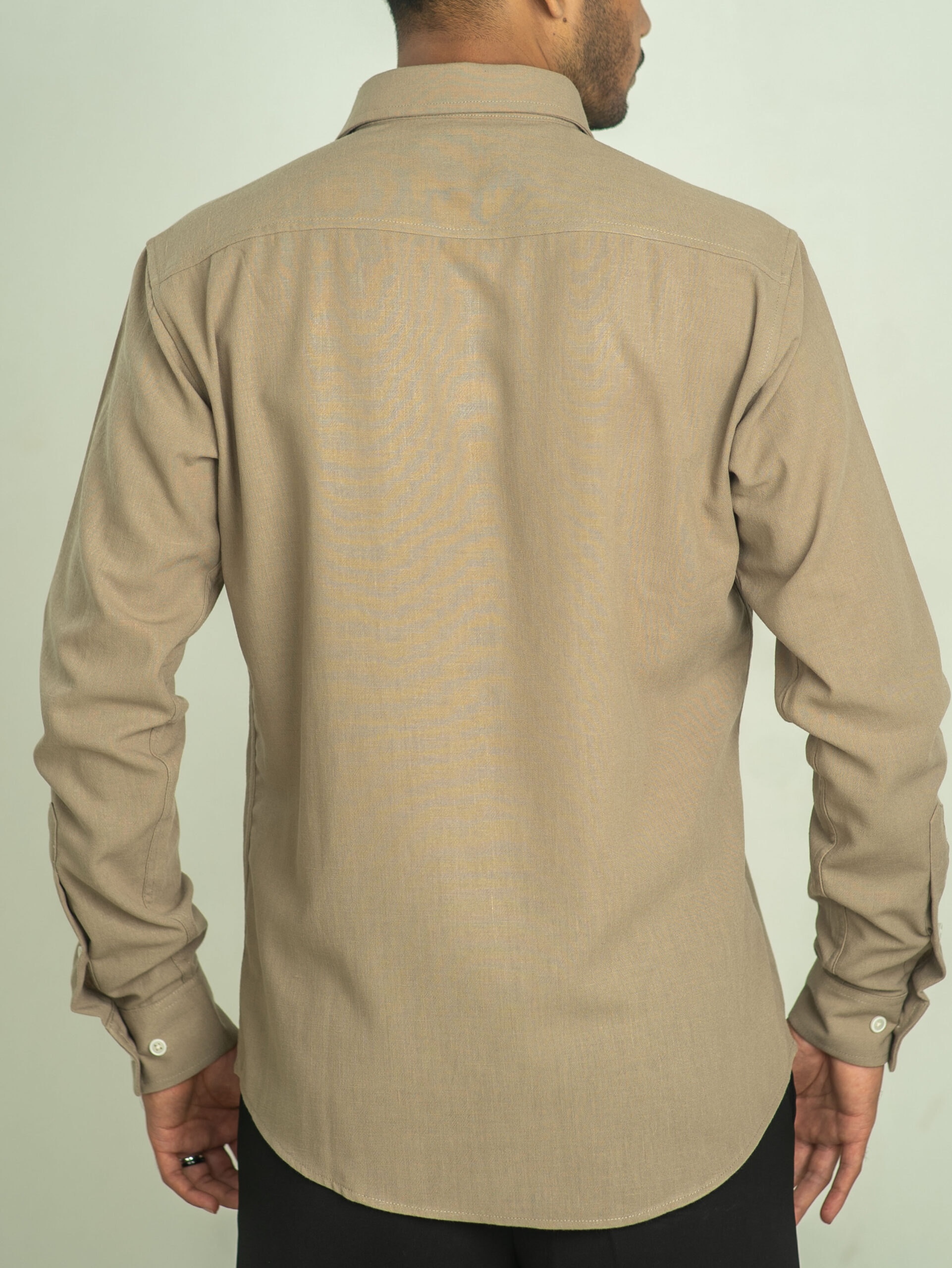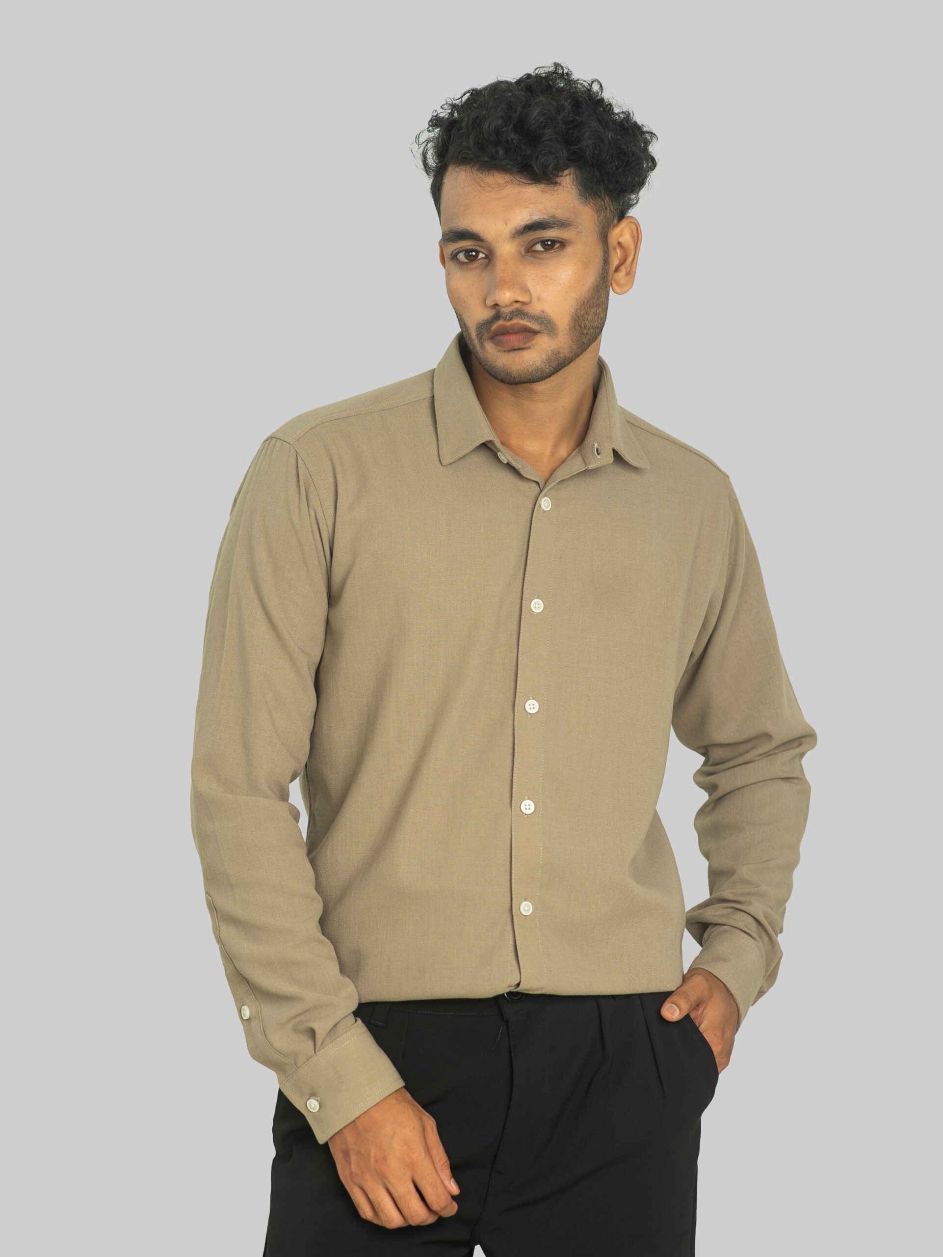 A clean, earthy tone with quiet character — this muted olive shirt blends minimalism with effortless versatility.