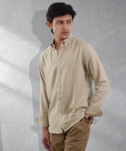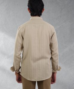 From the PRIME Collection — a sand-beige striped shirt crafted in lightweight 100% cotton for a soft, breathable, and effortlessly refined everyday look.
