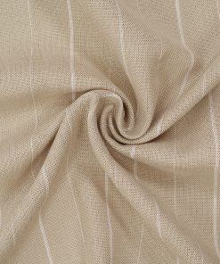 • Sand beige base with subtle white woven stripes