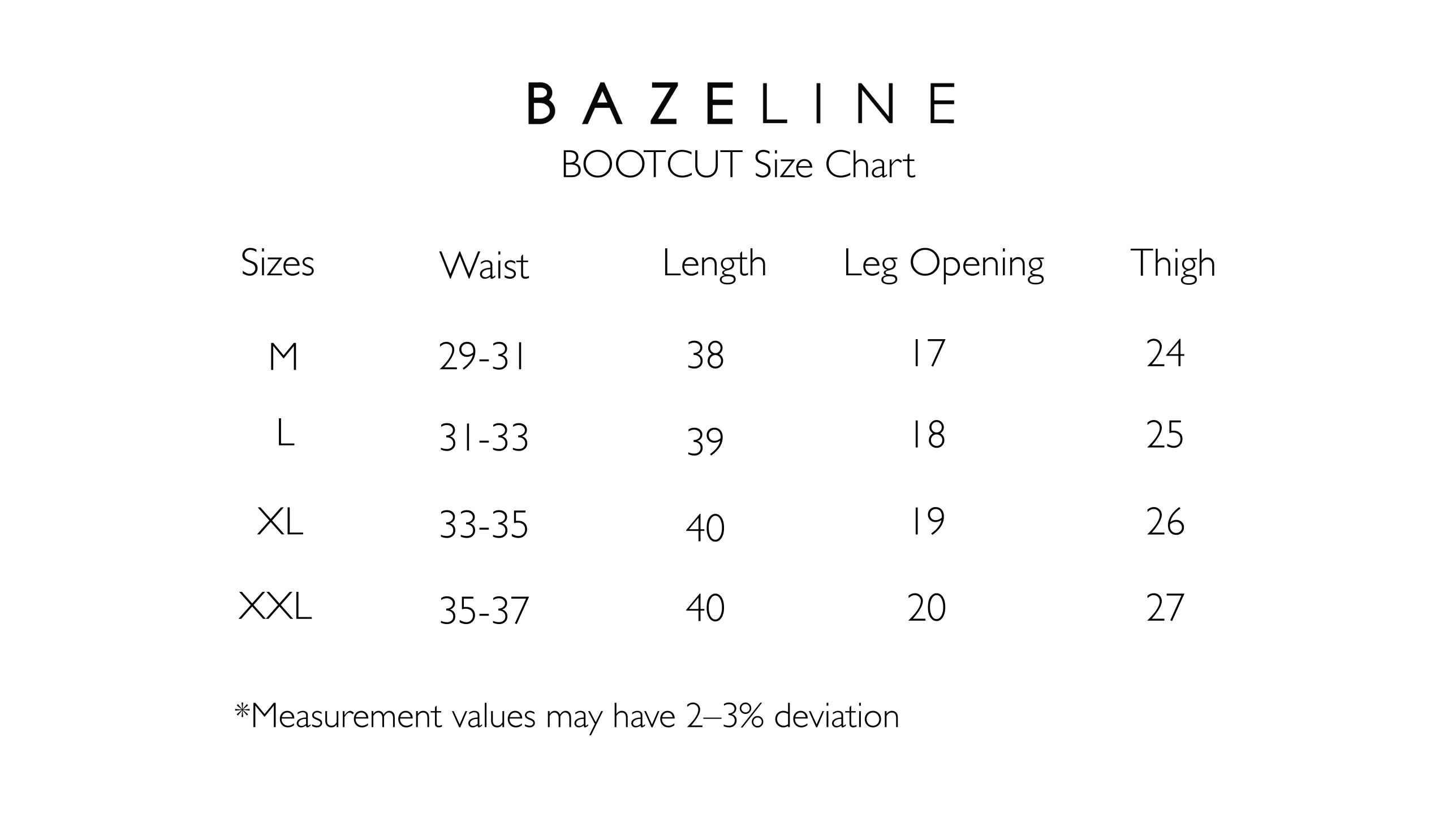 Size Waist Length Leg Opening Thigh