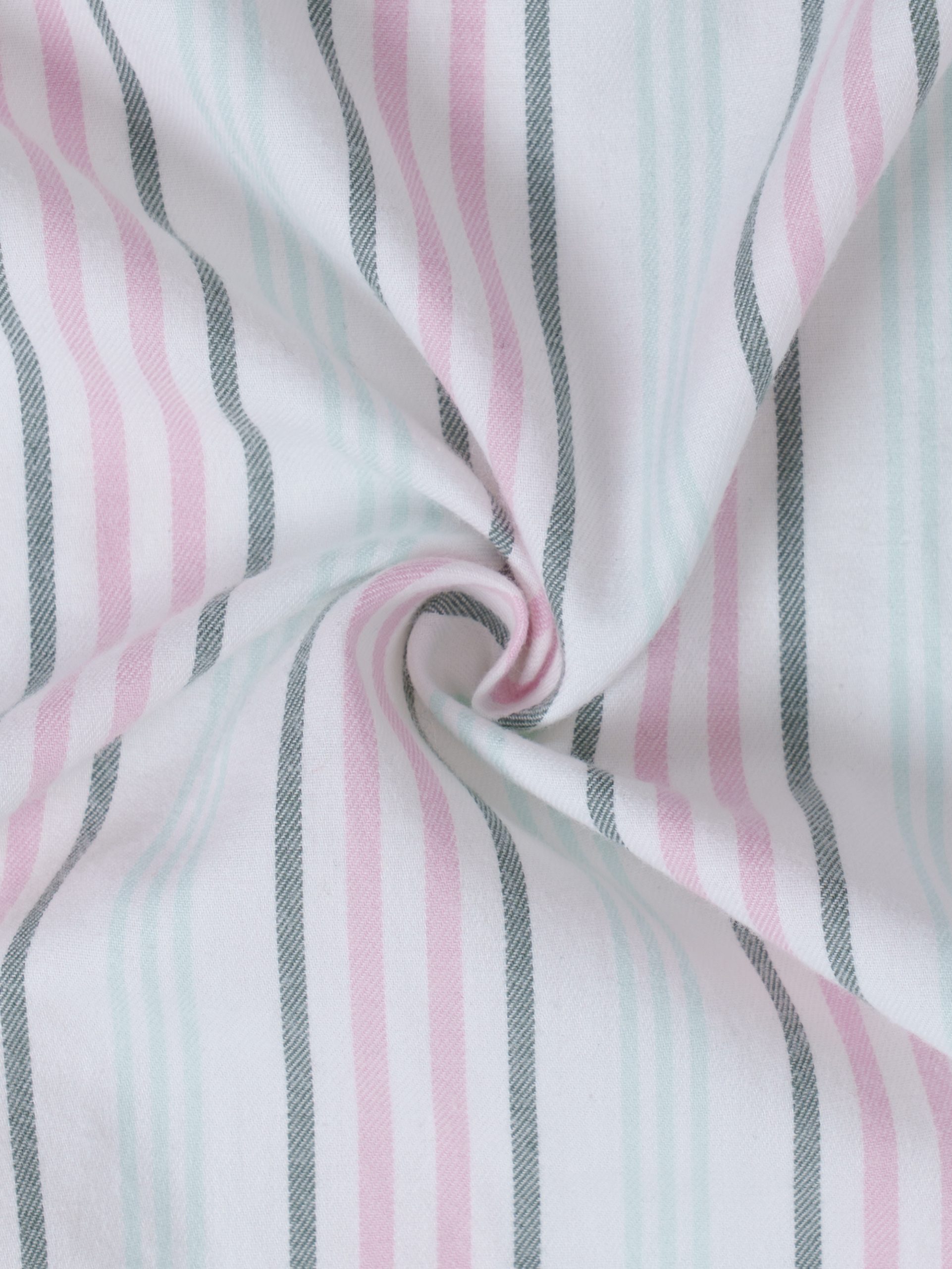 Pure white base with pastel pink, mint, and grey vertical stripes