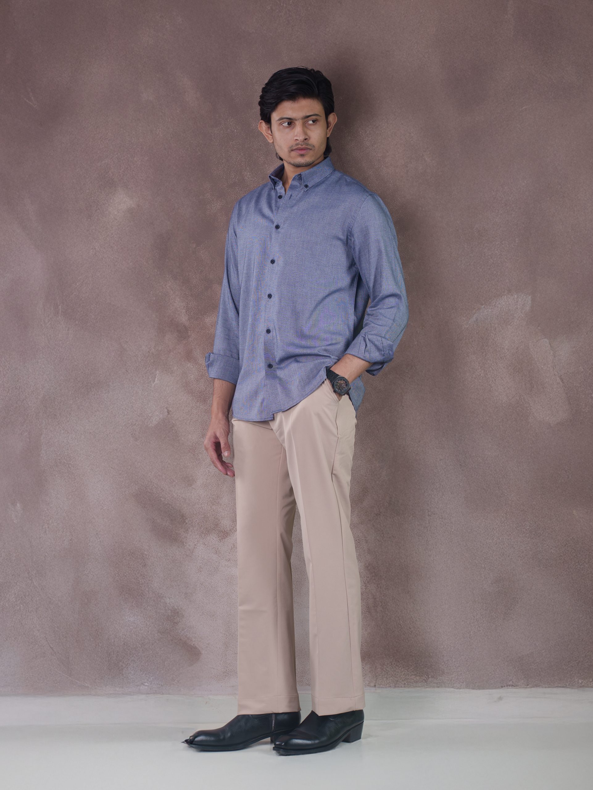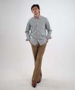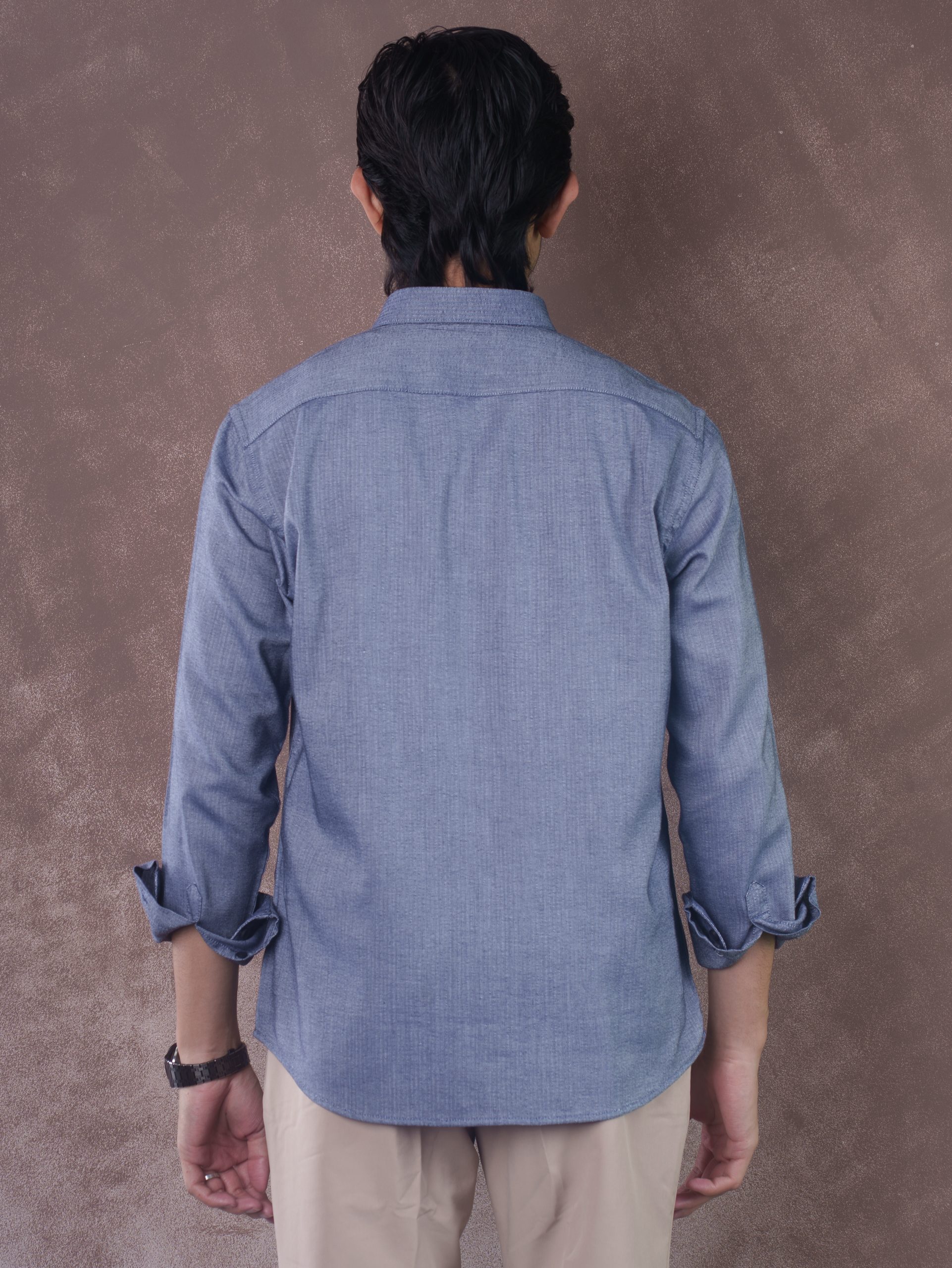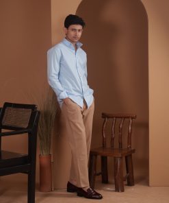 The SPECTRUM Azure Ash Shirt exudes elegance and authority. Crafted from 100% premium cotton, this shirt features a sophisticated micro-striped pattern in an ash-blue tone that provides a sharp and elongated silhouette. The fabric has a smooth, high-density finish, ensuring a crisp look that stays refined all day. Its lightweight and breathable construction makes it a perfect choice for professional settings or sophisticated evening wear.