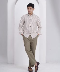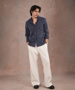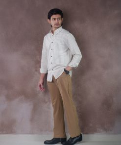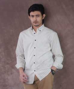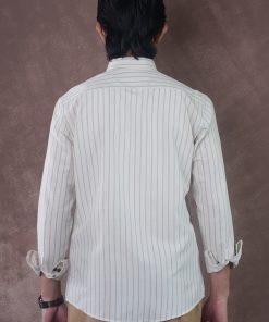 From the SPECTRUM Collection — an Ivory Off-white striped shirt in 140 GSM premium cotton, designed for a clean, minimalist, and effortlessly professional appearance.