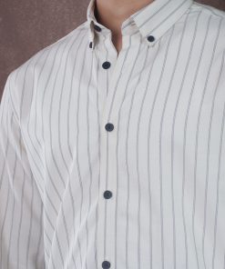 The SPECTRUM Ivory Off-white Stripe Shirt exudes elegance and purity. Crafted from 100% premium cotton, this shirt features a serene off-white tone with subtle, thin vertical stripes that provide a sharp and elongated silhouette. The fabric has a smooth, high-density finish, ensuring a crisp look that stays refined all day. Its lightweight and breathable construction makes it a perfect choice for minimalist professional settings or sophisticated daytime events.