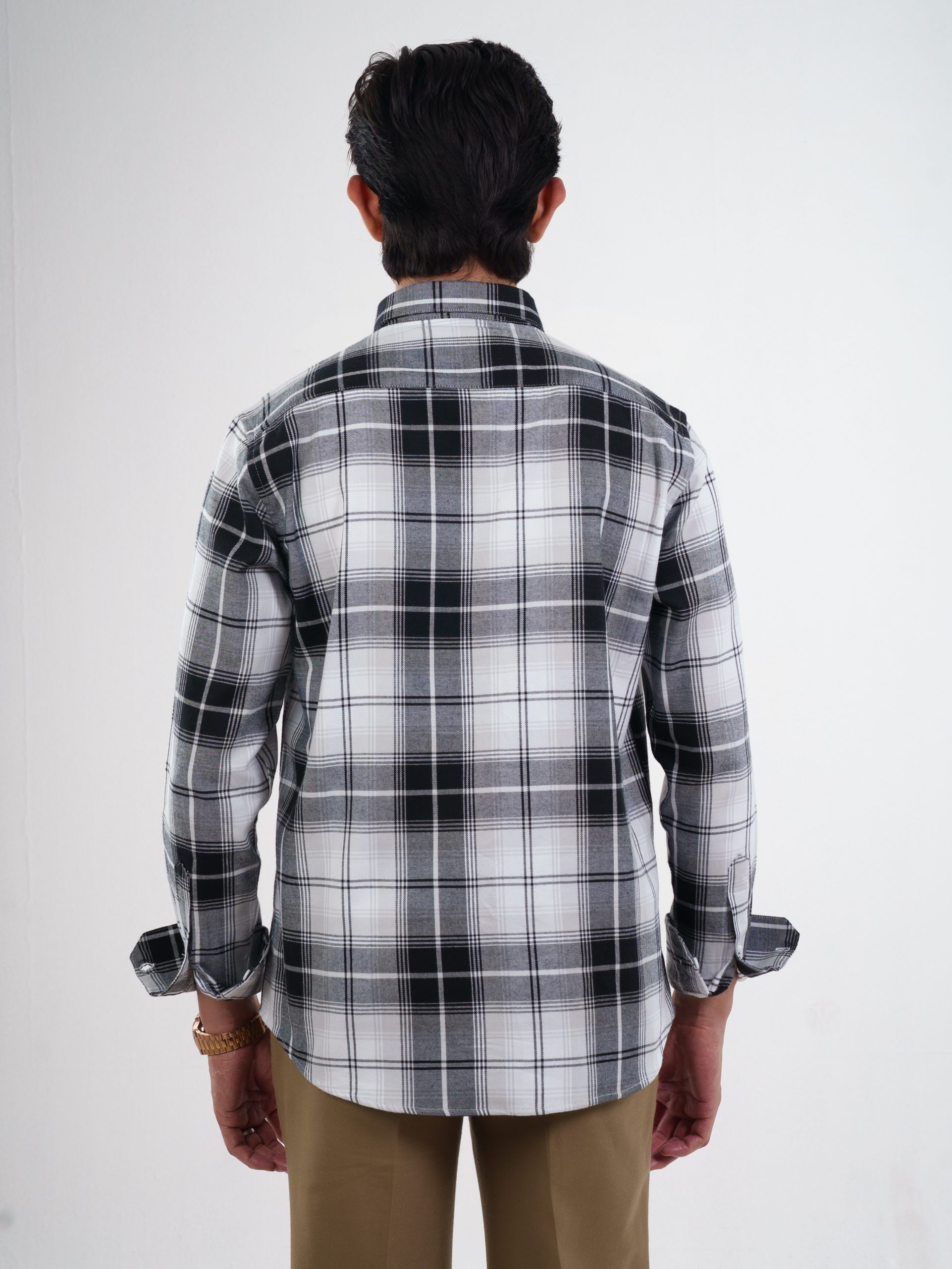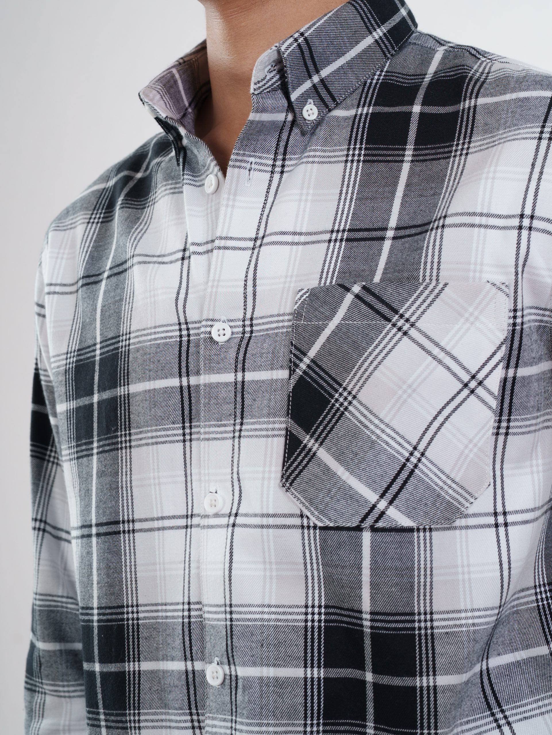 The WINTR Mono Check Shirt delivers a sharp winter essential through a clean white base accented with black and grey check detailing. Crafted from 100% cotton twill, this shirt offers a structured yet breathable feel, making it ideal for cooler weather with a refined finish.